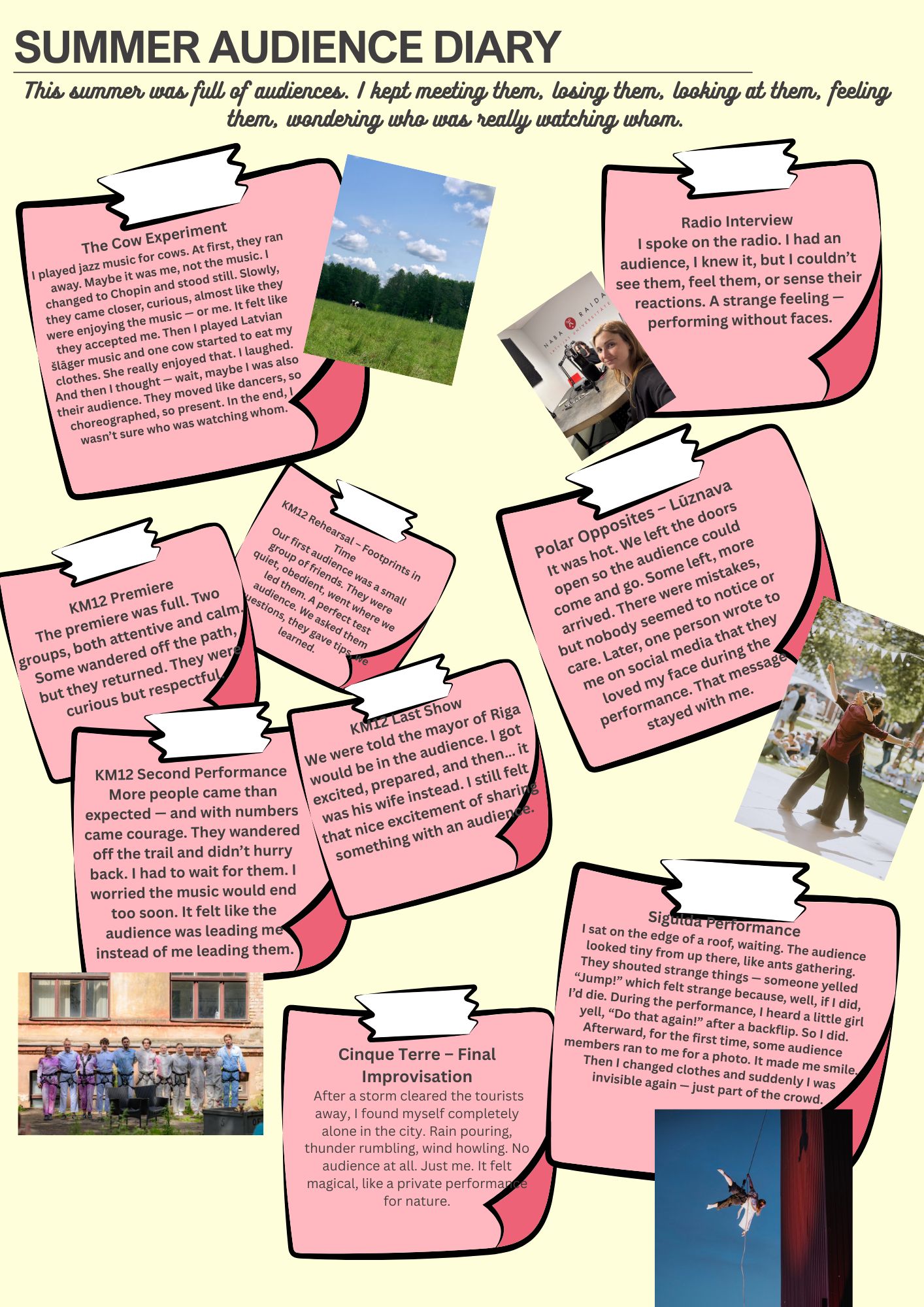 I decided to make a Summer audience diary. Sharing my thoughts about the experience throughout summer. Summer was full of audiences. I kept meeting them, losing them, looking at them, feeling them, wondering who was watching whom.