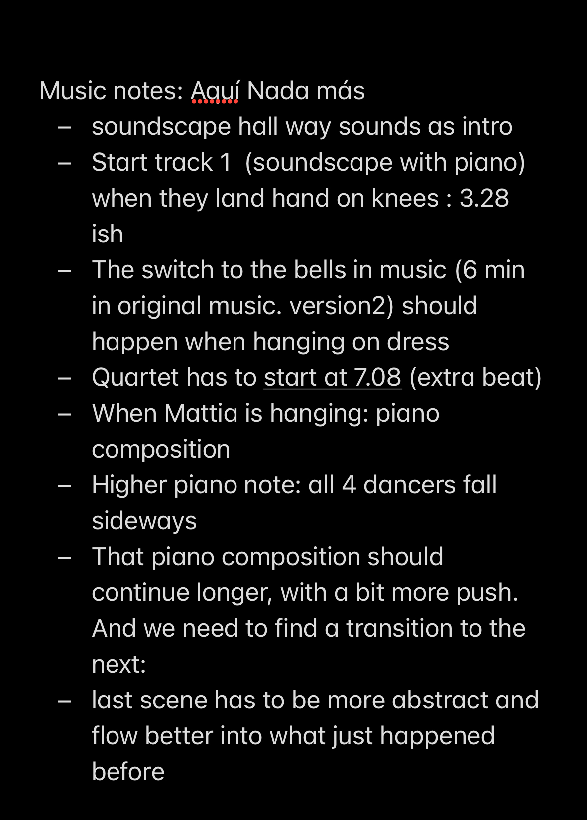 - en While working on a quartet, my composer was abroad, so we called a lot of times and talk things through watching video’s. I would prepare notes for myself to talk about with him