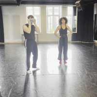 I’m moving in response to the sound recording we made of us moving and signing at the same time. During this week we were really thinking about the different ways we can convey sound through visual language such as sign language and movement as well as through the physical vibrations or sensations that sound creates. Being blindfolded allows me to tune into the sounds and the vibrations of the recording which I am using to improvise a movement translation of what I hear. This process could form the basis of how we could convey sounds to Deaf audiences.