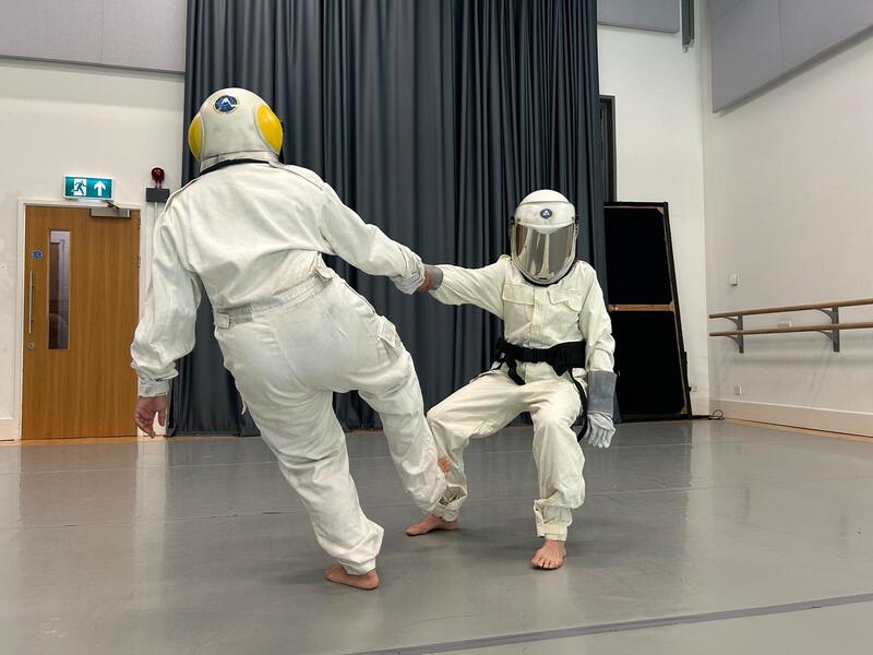 - en Two astronauts are trying to find the balance and support within the precariousness of the world.
