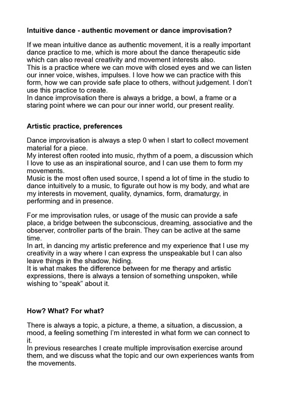 Thoughts about Tier 10 starter and artistic statement about my own movement material creation parctice