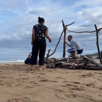 Work day for the iCoDaCo Spain collective in open environments, in this case Langre Beach. Sensory practice of walking, running, moving, and listening to the space and others with eyes closed.