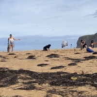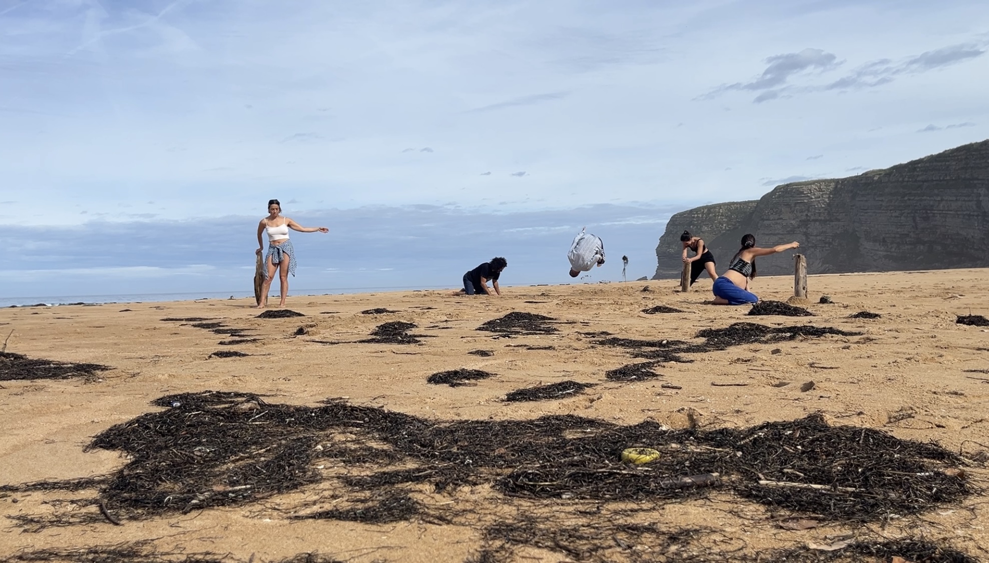 Five bodies dancing a nature space. Surrendering to its conditions: Sounds, breeze, temperture, texturas. Bodies taking the chance to conect with themselves, their breathing, gaze and skins.