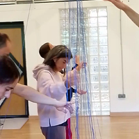 An scenographic element is used to create an action around the philosophy of weaving versus choppin/cutting. We consider the option of having men holding this action while women develope a "biggest" one, handle a biggest space.