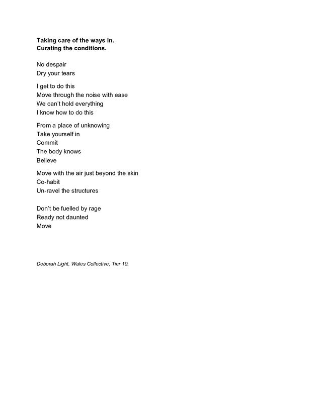 Deborah Light’s individual contribution week 10 - Movement - a manifesto for taking care of the ways in.