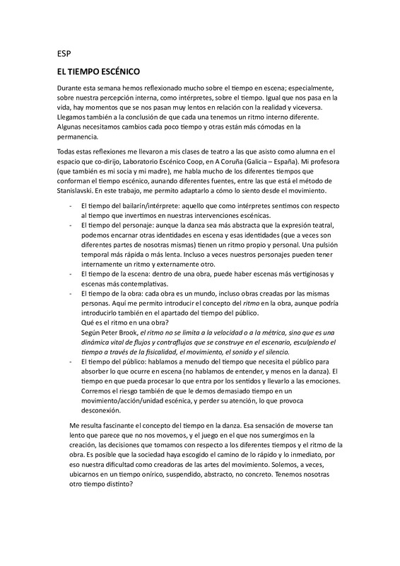 - en A reflection about different conceptions of time in Scenic Arts, and my particular vision about time in Movement Arts