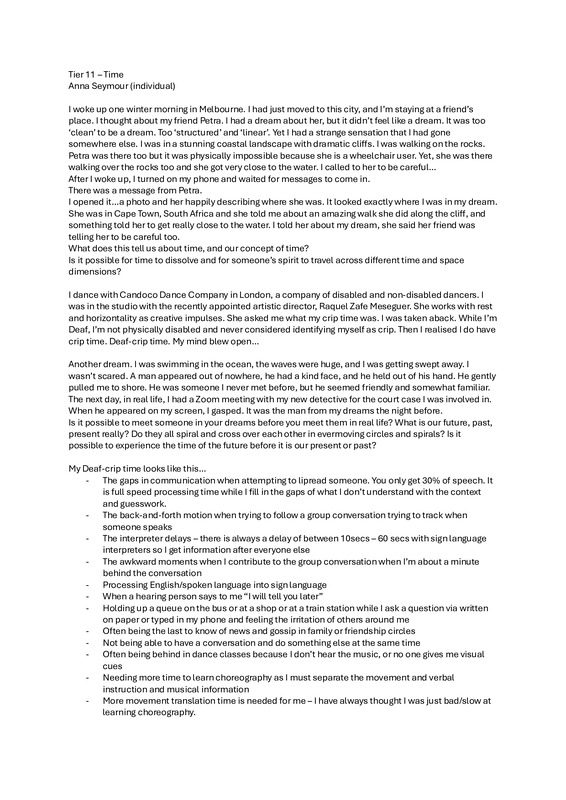 - en Some written reflections about my dream time / real time morphing together in no linear order, and about my Deaf Crip Time.