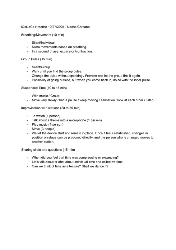 Script for a theatrical exercise based on group listening and individual and collective time.