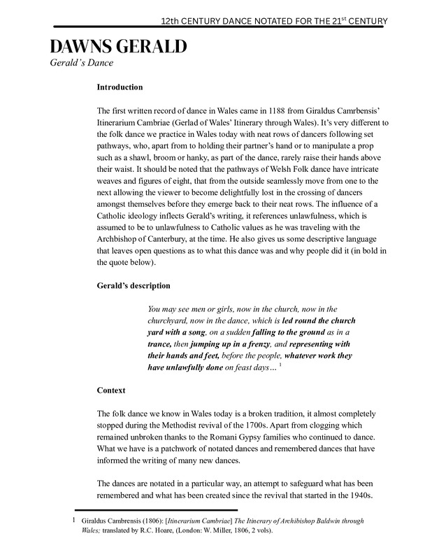 - en A modern interpretation of documentation of dancing in the 12th century in a church yard in Wales. Written in the style of a Welsh folk dance