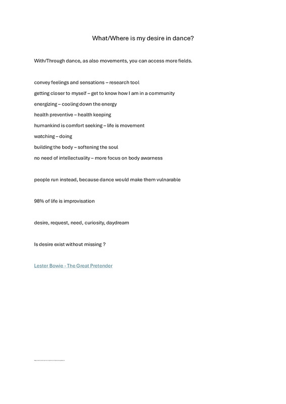 This was during our first week as a newly formed collective of seven individuals. What you can read among the lines, are mostly keywords/thoughts about my connections to dance as a movement (in 2024. end of November). Also one important question, a song and a little secret message.