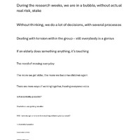 Everything was still quite new. The people, the program, horizontality, the boundaries. I followed the vibe of my previous individual contribution, writing down some key thoughts from the week. Worth to mention, that for a day we worked with a group of elderly.