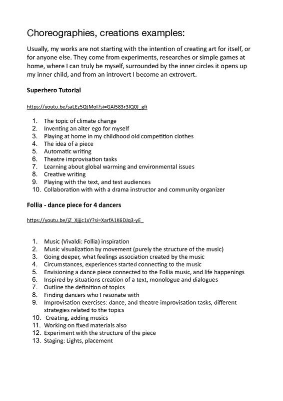 Choreographies, creations examples