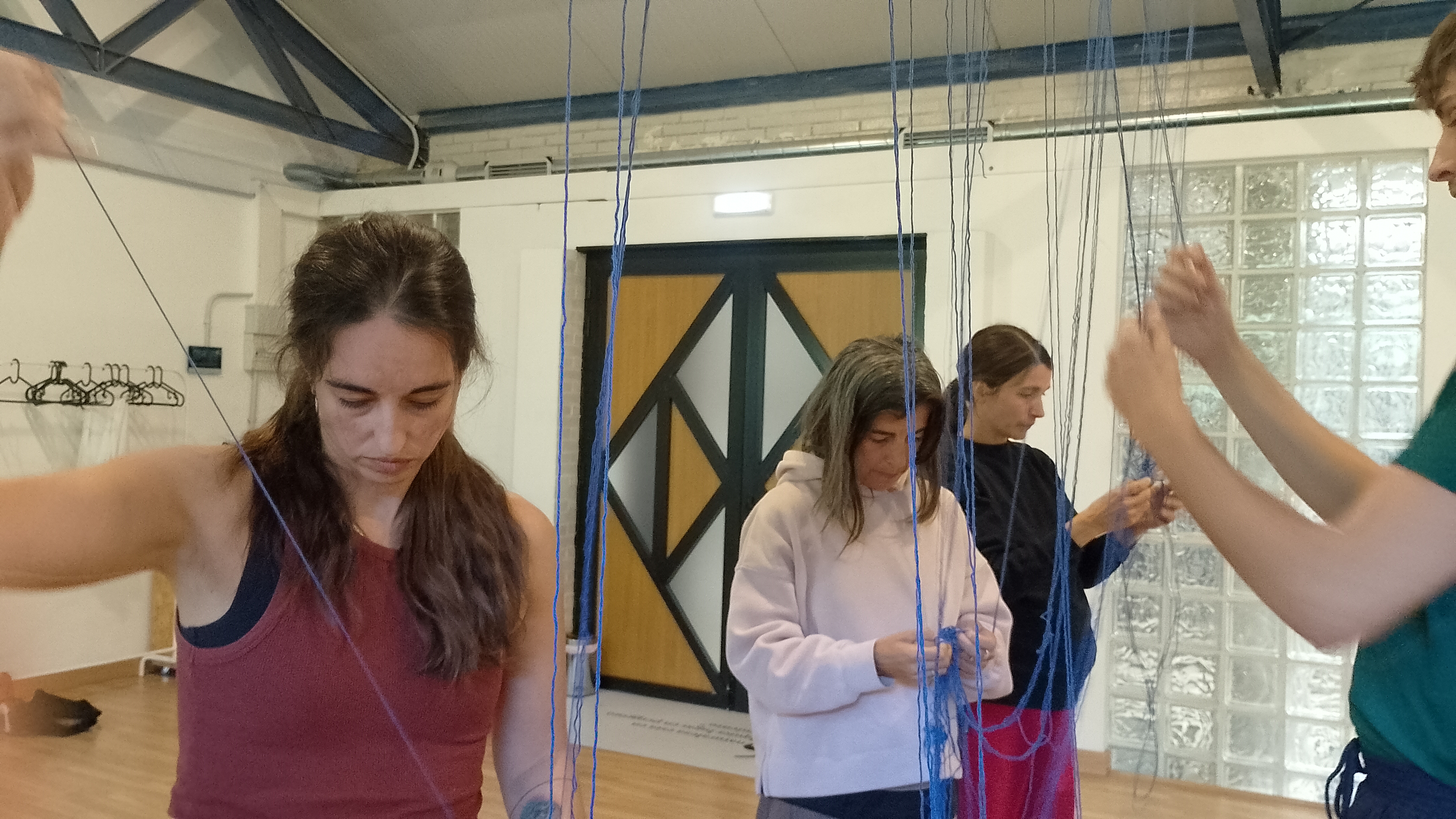We went back into a conversation we had around this props/set up tier. The time you take untieing a knot... Is it a wasted time? Or is just capitalism what has told history that, in order to "advance" and "make progress" is better cut knots and "save" time. What experience leaves esch action into my body. The proposal is to use this action as a wisdom action in the group.