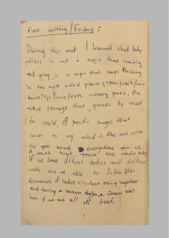 On Friday, 25 April 2025, I woke up at the Nordisk Theater Laboratorium residency place and noticed the butterfly stickers on the wall of my room. There, i started free writing as a conclusion for the whole week, reflecting on bodies and politics.