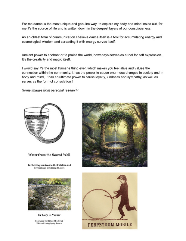 Within this document I wanted to share my personal reflection on the question of what dance in general is. I would go hours talking about its physical and philological states or impacts. Recently I got hooked on the myths and folklore of Georgia. These images are part of my research, researching dance "perpetuum mobile"