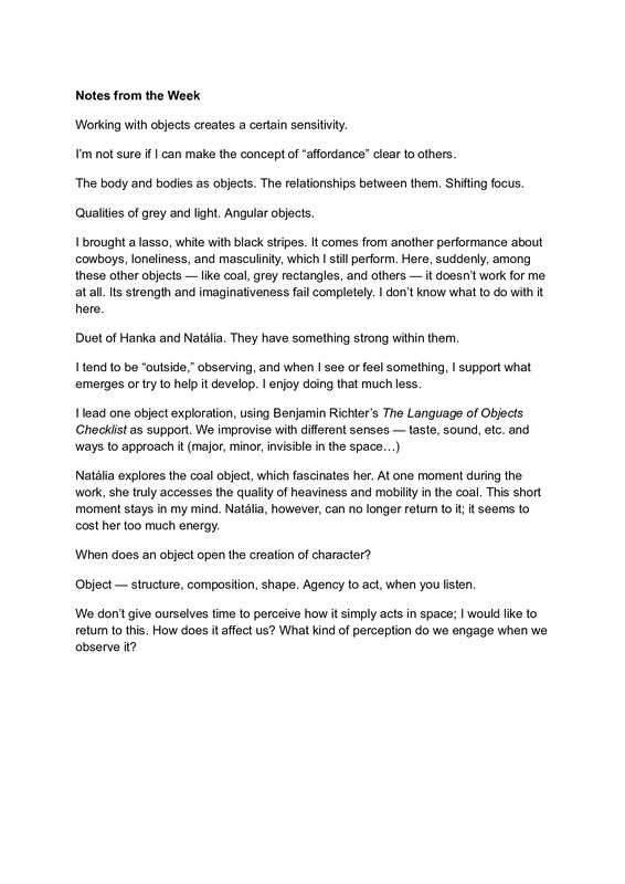 - en Observations and questions from the work with objects.