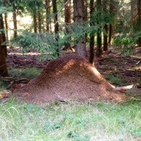 During our collective brainstorming of examples of works “beyond choreography” I proposed a video work by Matěj Smetana in which he built a pyramid out of sugar cubes next to an anthill and documented what happens. This work became an inspiration for our further work in the collective. The photo documents my first time seeing such a big anthill in the forest.