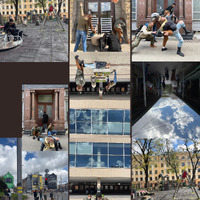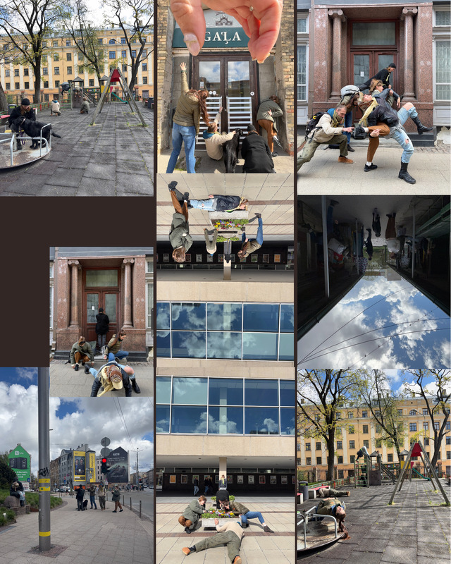 This file shows a collage of 10 images created in urban environments, exploring the theme of unusual positions and movements in everyday life. The pictures were taken during the improvisation set.