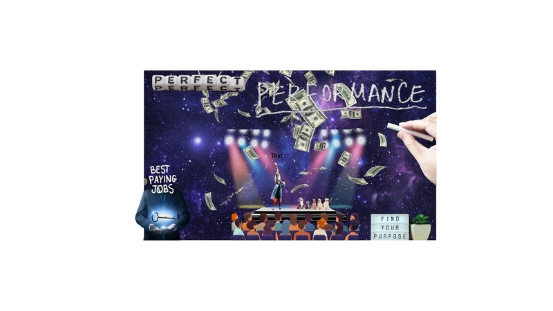 This collage represents my dream scenario of a performance. The venue is located in space — a limitless, surreal environment that symbolizes freedom, and the absence of boundaries. In this world, money is no obstacle. The falling bills represent abundance and the idea that I can create whatever I want. At the center of the scene stands me, the performer, surrounded by my co-performers — dogs. Together we share the stage, while an enthusiastic audience watches and enjoys the show. The atmosphere captures a sense of joy, confidence, and fulfillment, as if this were truly the best job — one that not only pays well but also allows full creative expression. On one side of the composition, the phrase “Best Paying Jobs” appears, contrasting with “Find Your Purpose” on the other. Between them lies the balance I aspire to: doing meaningful work that sustains both creativity and life. The small plant symbolizes sustainability — a reminder that even in a dream of abundance, growth and care remain essential values.