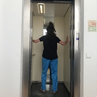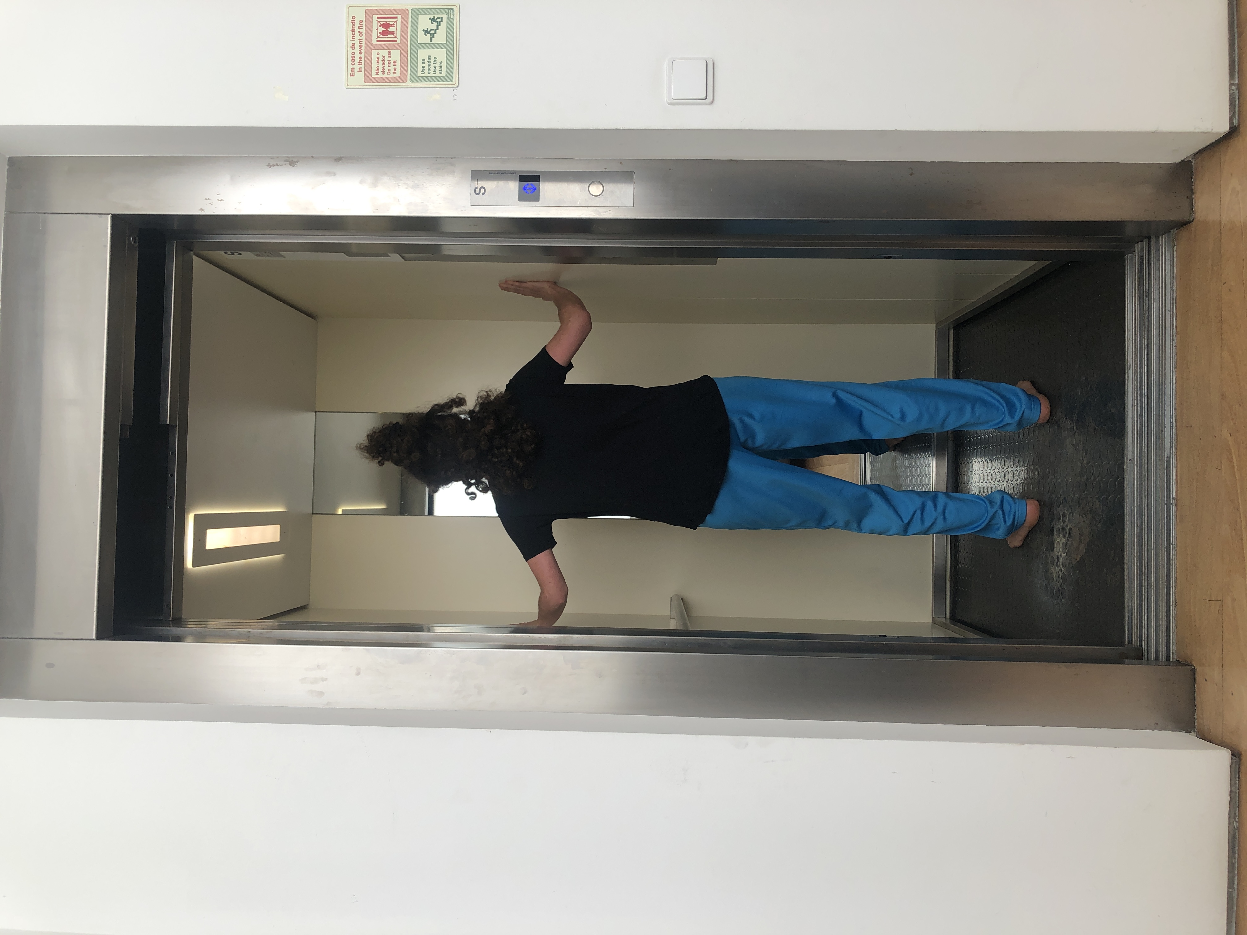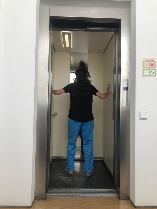 Following my exercise on artistic manifestos, Mercedes chose to read and embody the Glitch Manifesto and created an action in which she was playing with the lift opening and closing to represent feelings