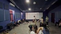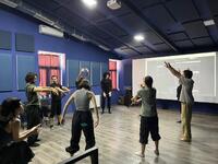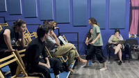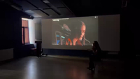interview Part of the idea of this tier was to fantasize about how the audience could perceive our performance that we imagined in the previous tier. Following the idea of my contribution at tier 4, I let my body react freely to my current situation, thoughts, feelings, emotions, whilst being interviewed by Helén Tamaskó after watching a fictitious show.