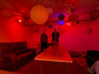 Dark conversations (test event) This is the space where we experimented with a gathering event called Dark conversations. Here we are prepping the space. The meeting was held at Ailé house, a queer community hub. The event encouraged people to talk, to share thoughts of positivity, hope, optimism or to simply listen. Set in a dimly lit and meditative space to help people be less self conscious and more willing to be present.
