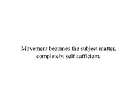 Movement becomes the subject matter, completely, self sufficient. Starter to think about