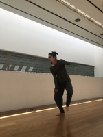 Sol embodying Guerrilla Girls Manifesto to engender Desassossego Following my exercise on artistic manifestos, Sol chose to read and embody the Guerrilla Girls Manifesto and created an action in which she was intensifying movement through “monkey-ing” and “feminist-ing”.