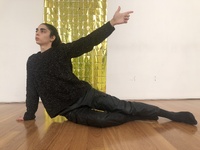 Julio developing Aura's pitch on Uranus: A Transfuturistic Odyssey Following my exercise on pitching a future project to each other, Julio developed a short performance on my next idea of a new piece title “Uranus: A Transfuturistic Odyssey”