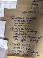 Somatic advocacy A scribbled-on list of 3 themes that matter to me, while I realize there is only one theme - the body. Visiting the pre-verbal realms and seeing what appears. I find it a confusing place to be though, since my first form is language and poetry, and dance is my way to expand that, and yet, we need to return back to the abstract level in order to communicate.