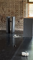 Costume/Prop/Set - Czech Collective Photo of a set of objects the Czech collective was working with during Tier 9 - coal hanged from the ceiling, rope, styrofoam, tape.