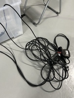 Electrical cables Black electrical cables on a grey floor and opaque plastic box