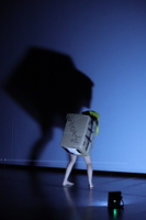 The box The box as a costume, prop and set. An object often used in theatre because it's practicalities : light, cheap, easy to manage, easy to transport...I kept researching it inside the frame of my clown performance The Lesson. I work with his 3D dimensions and its relation to light design and body. Many meanings came through. The difficulty was the fragility of the object when creating choreography. Some movements will break the box pretty easily so, I wondered, Which other materials could be used to create a box? How could we still keep its light quality and make it more resistant?...