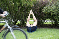 We tried it both hanging, swinging, laying down, as a dress, bouncing, as a sling shot and many more.